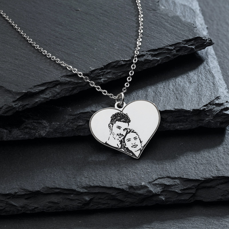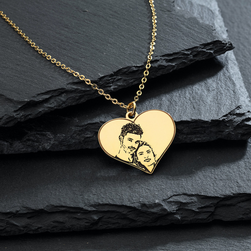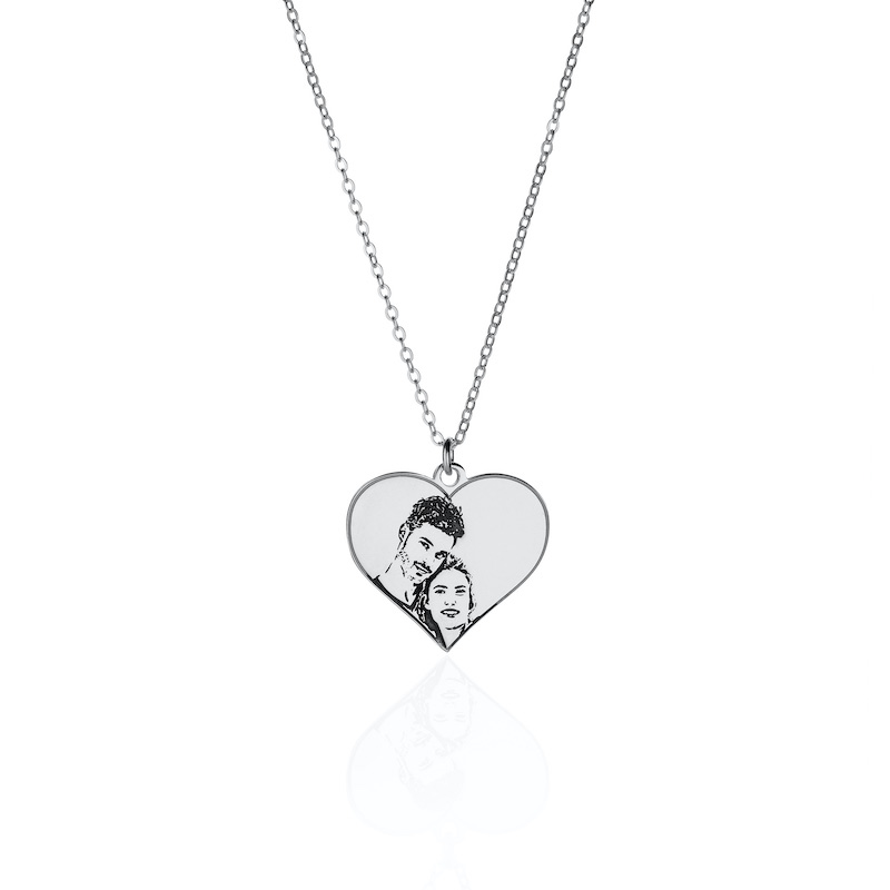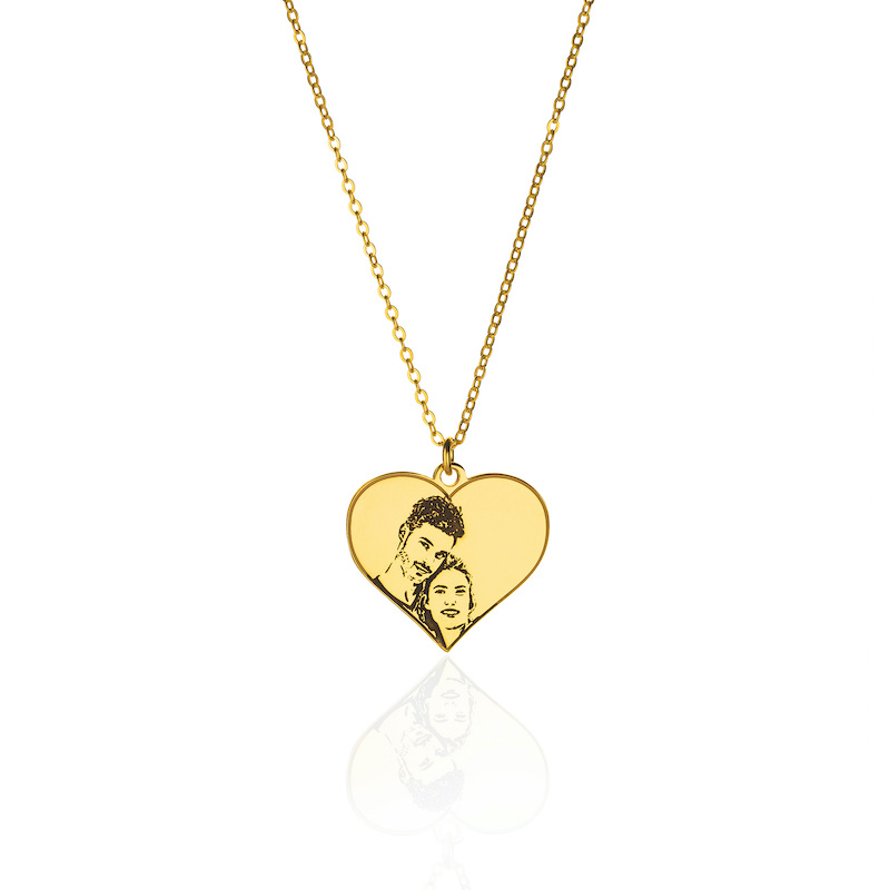 עצבי תמונה על גבי תליון לב עם ציפוי זהב 18 קראט או בכסף.