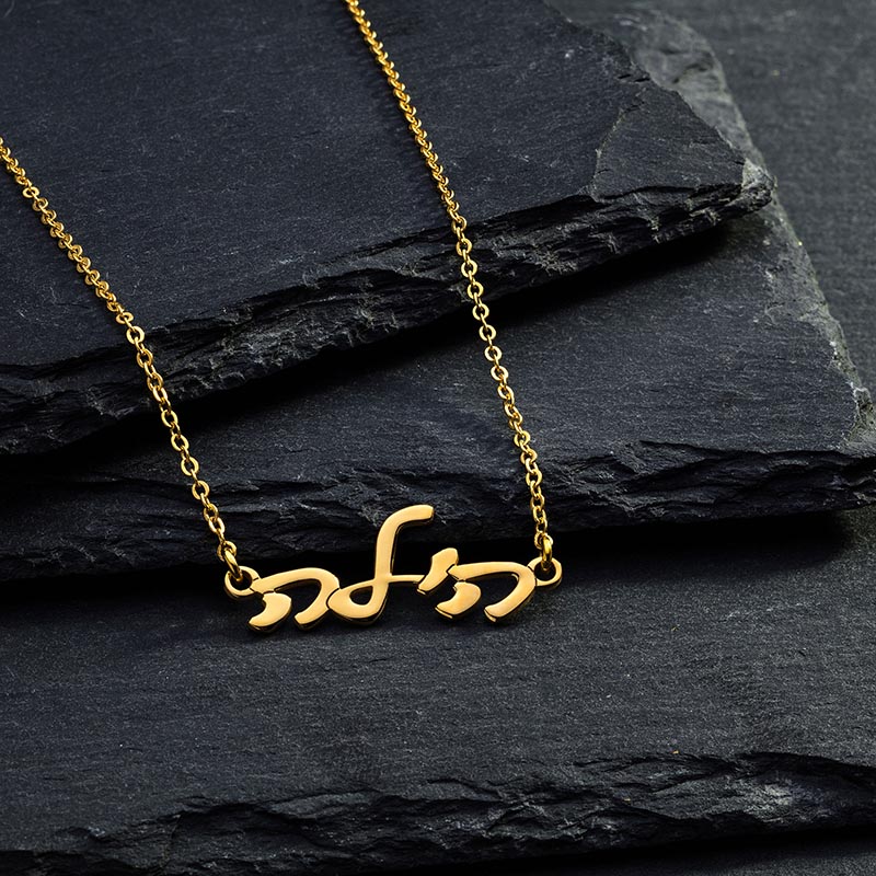 עצבי את שמך על גבי תליון שם עם ציפוי זהב 18 קראט או בכסף.