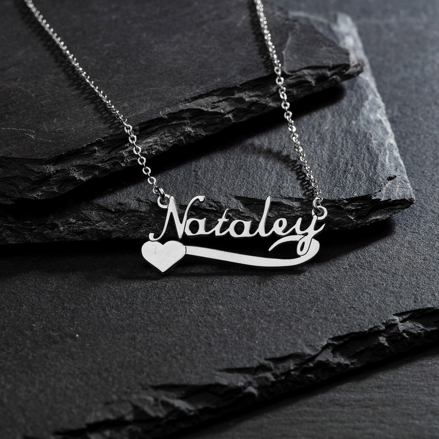 שרשרת שם בתוספת עיטור של לב, ניתן לחרוט באיזו שפה שתבחרי.